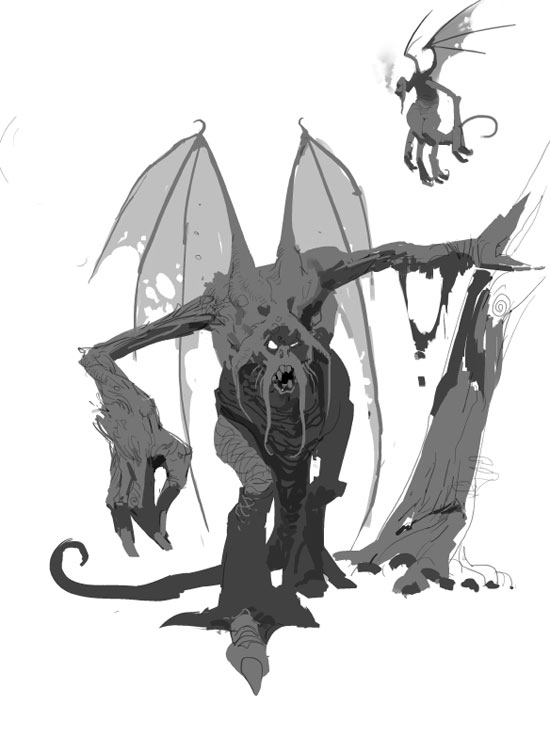 Jabberwocky had to walk through the woods so this tree felling fairy like creature was my solution for that...corner drawing says he can fly when he needs to.
