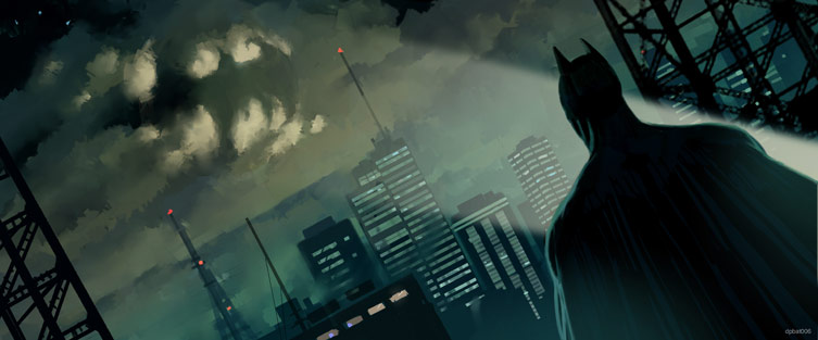 The classic Bat Signal...maybe you could believe it's formed from bad guy on spotlight? maybe not