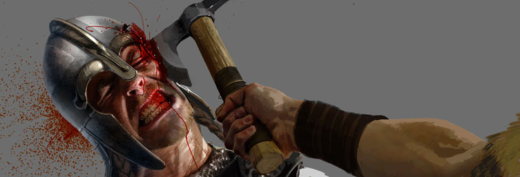 My friend and fellow artist Josh Viers volunteered to be photographed for this one. They wanted to test how gory Beowulf could be and how red the blood should be.
