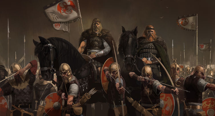You can tell I am bored out of my brain doing this illustration...I like Wiglaf's face the rest is a chore- even the horses look like they wish they were somewhere else.