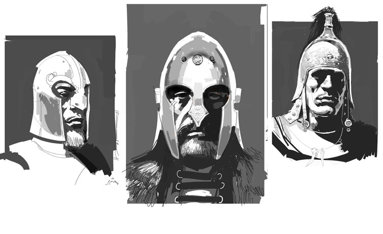More helmet designs...simple shapes and material suggested by the slightest of marks. No google texture bullshit hiding bad design.