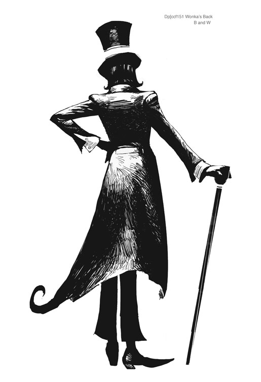 It was decided we shouldn't reveal Wonka too early so I did this back shot. Note the Burton spiral and exaggerated points and curves