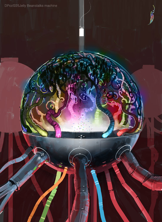 Glass elevator ride...jelly beanstalk extruder....