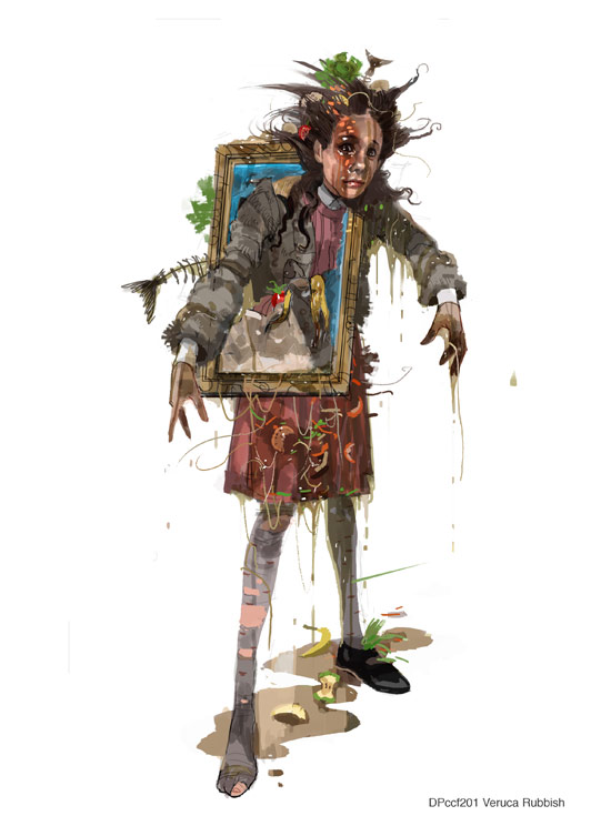 Veruca Salt emerges from rubbish tip after being thrown there by the squirrels. Can't remember why we had the picture frame.