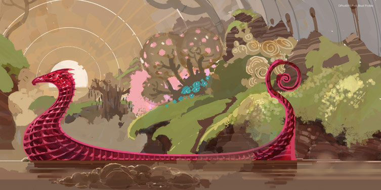 Candy Boat based on a viking ship. The head was changed to a friendlier 'sea horse' for the final design. I wanted light to filter through it like a kid's water pistol.