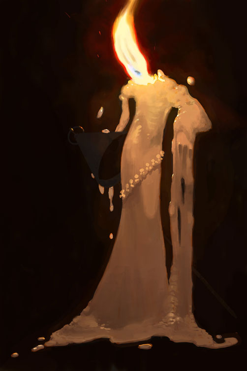 The Ghost of Christmas Past as described in the book is obviously meant to suggest Scrooge falling asleep while staring at a candle with it's flickering flame suggesting flickering changing faces. Old to young to girl to boy. This version is a little too literal. |