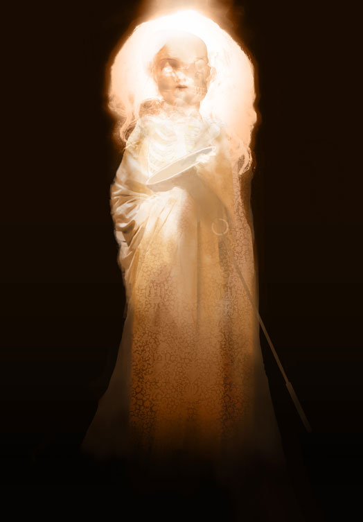 Rather than making a single face represent the old man, young boy I wanted to have each face flick on and off. This is a photo-comp of a dolls head and a skull. You can't see both at the same time