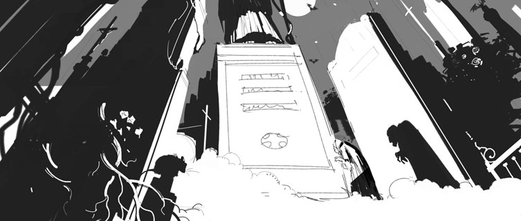 Nosferatu influence and a bit of Mignola for Scrooge's nightmare journey through cemetery.