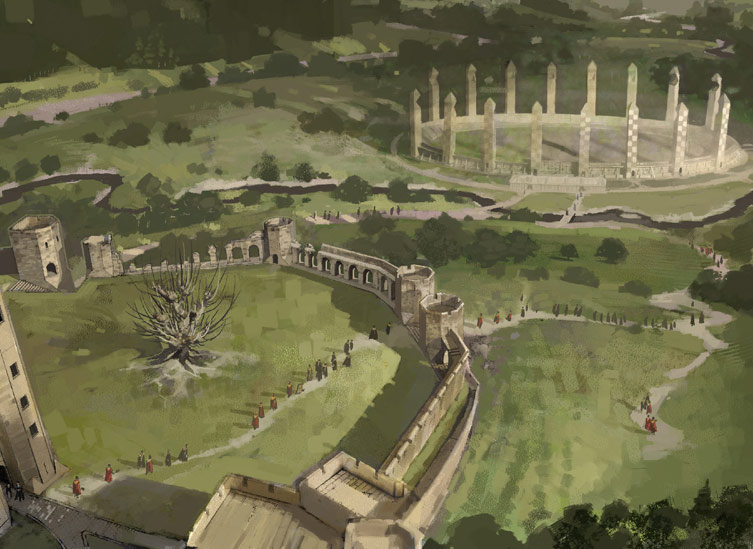 Kids journey to Quiddich showing new Hogwarts architecture ...Quiddich painted over photo of card model
