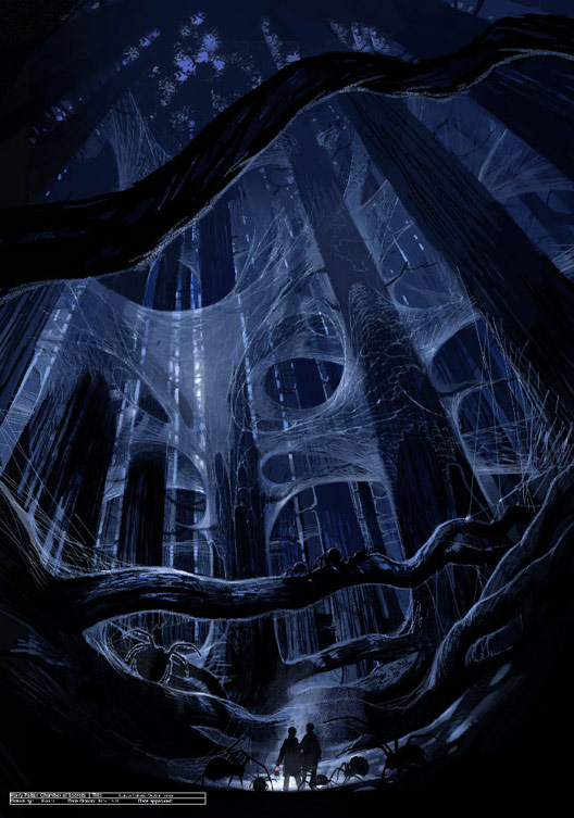 This was painful to do. The webs needed to have Gaudi grace but still be transparent and sticky ...a lot of heartache and false starts.