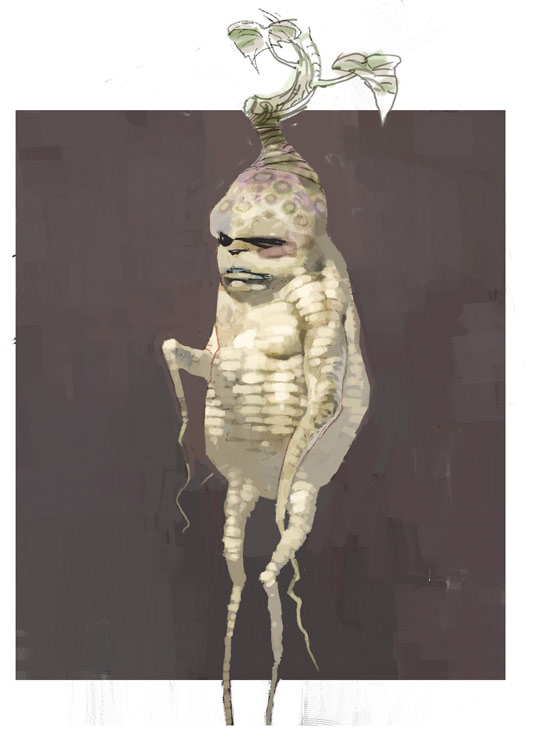 grumpy little mandrake....still sleeping- turnip purples second for battered look