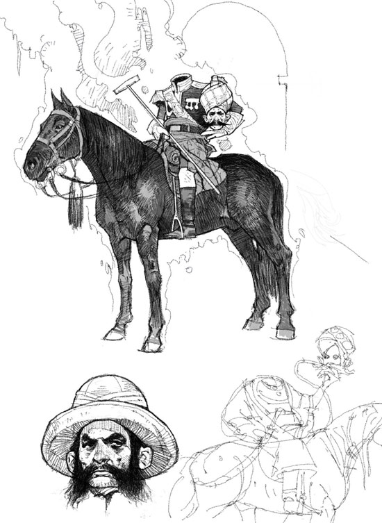 Probably saw some Toppi or other line art genius and decided I should do tradtional style for a couple of days. Raj headless horsemen