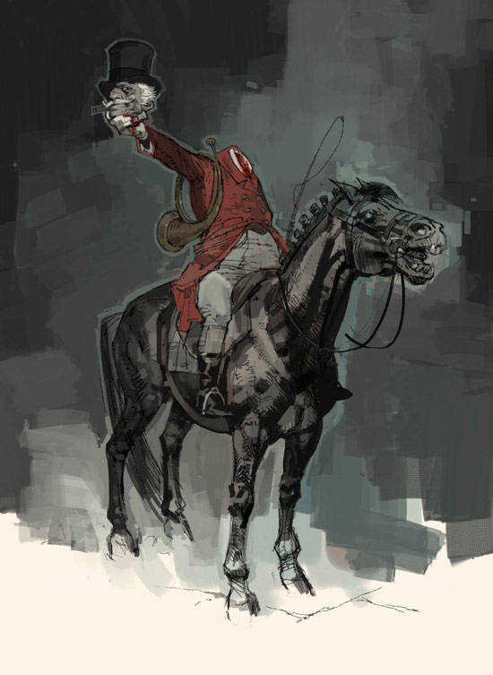 More fun with headless horsemen that never made it to the film- everything is shouting except the bugle