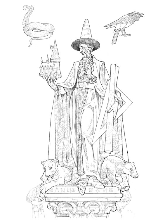 Hogwarts Architect. Based on baroque sculpture whose name escapes me...sorry. email me if you know. Chance to do some pencil work-note the kids
