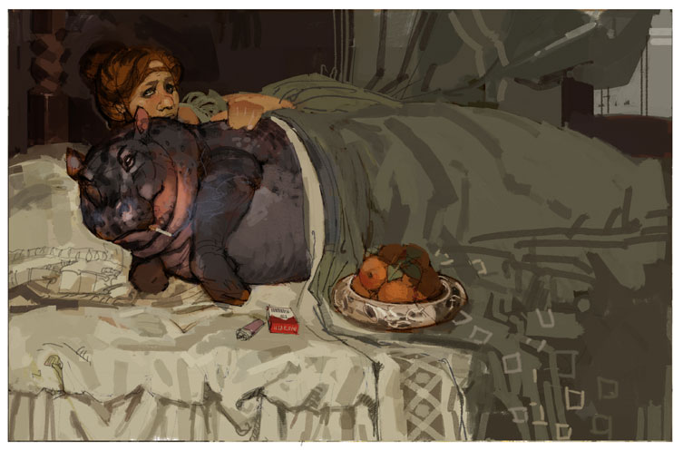 Couldn't get Alfonso to decide on Fat Lady and Hippo pic ..decide to provoke him. I'm sure she was drinking Absinthe