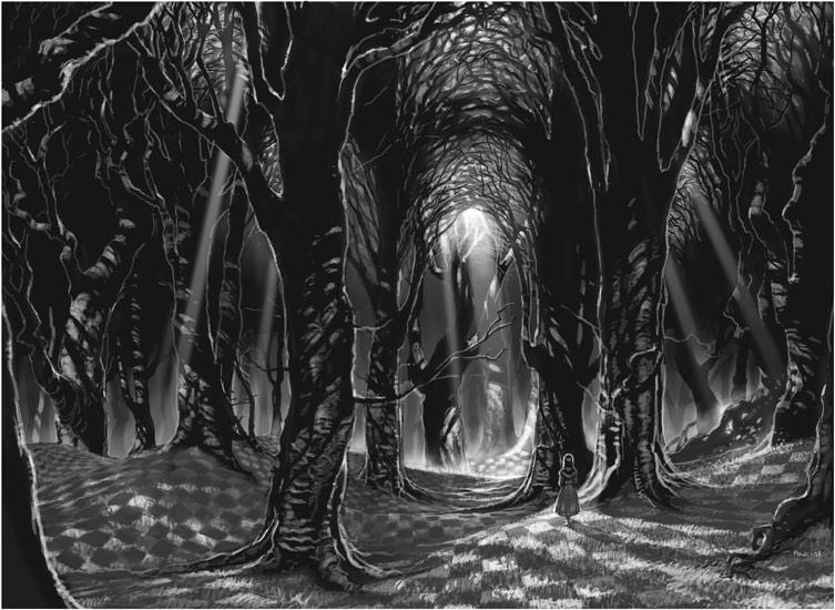 Alice in Wonderland 99. Director Nick Willing asked for an ominous cathedral like forest. I still like the 1950's black and white movie feel of this pic.
