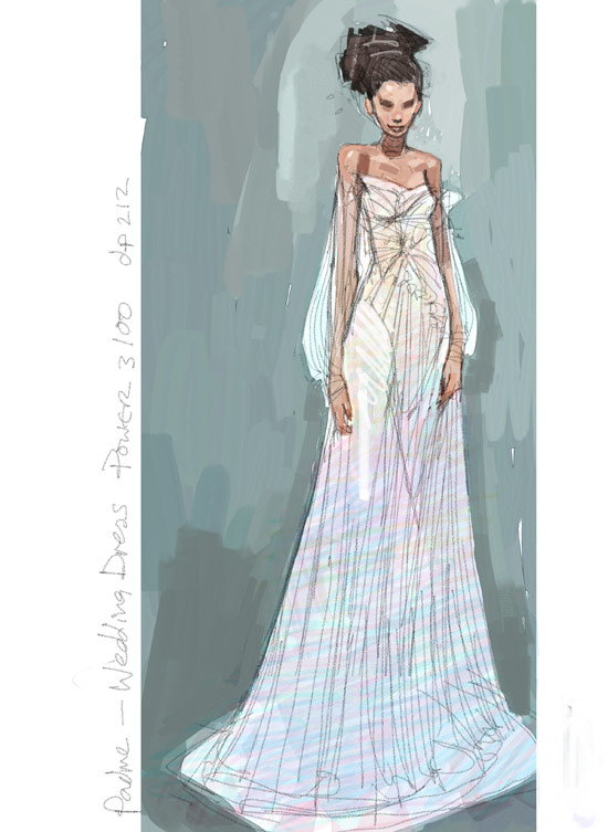 Padme wedding dress...Costume Designer Trisha Biggar often slapped my wrist for making Padme have the legs of a 9 foot woman.