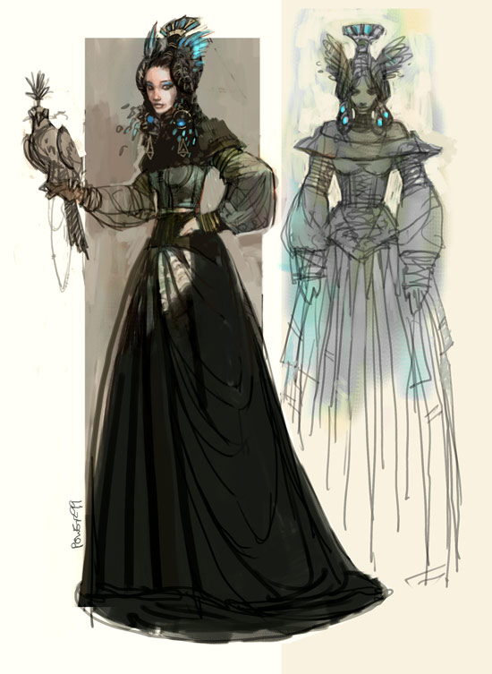 Alphonse Mucha was a big influence on us while we were designing Padme's outfits. With maybe Frazetta influencing the face. Hard to escape your influences