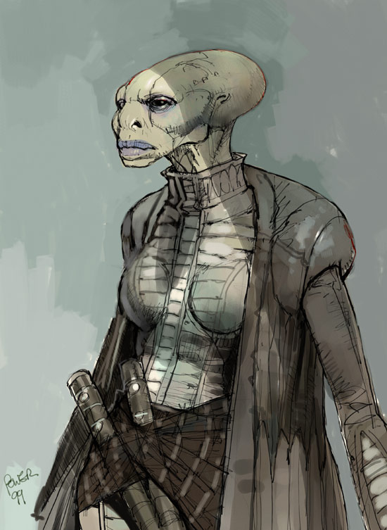 Early design for Sith when we were exploring the option of it being a female alien.