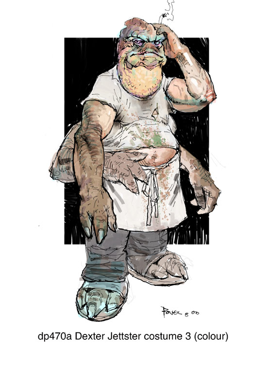 Mike Murnane had already sculpted the strange diner chef...I was providing costume ideas and maybe a little character. Lots of random colour thrown about.