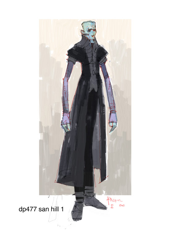 I like Samurai costumes with big comfortable collars. Skinny red lines imitate red bic biro lines I used in non-digital comic artwork.