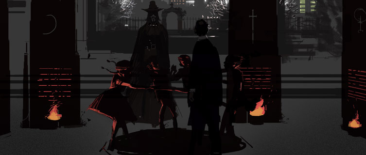I wanted to suggest street lights beyond the monument -like being in a dark city cemetery. Much of what we see would be silhouetted against this distant light.